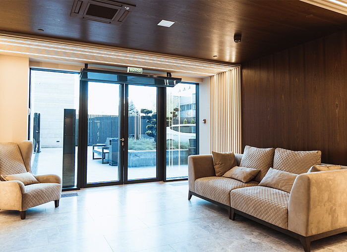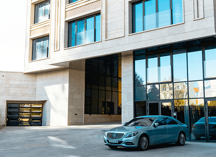 В эксклюзивном дизайне лобби, лифтового холла и этажей применены премиальные материалы отделки: шпон корня ореха, декоративные металлические элементы ручной работы, ценные породы мрамора Tundra Gray и Dorado.